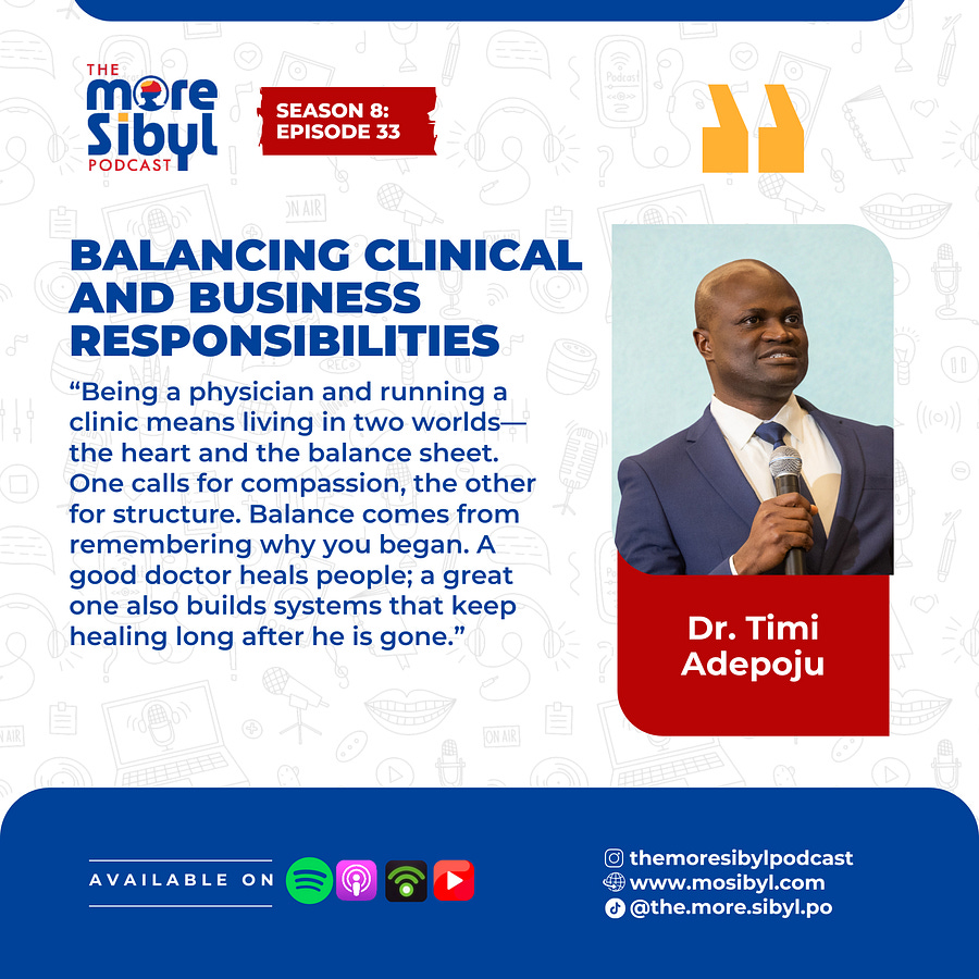 “Being a physician and running a clinic means living in two worlds — the heart and the balance sheet. One calls for compassion, the other for structure. Balance comes from remembering why you began. A good doctor heals people; a great one also builds systems that keep healing long after he is gone.” - Dr. Adepoju (2025)